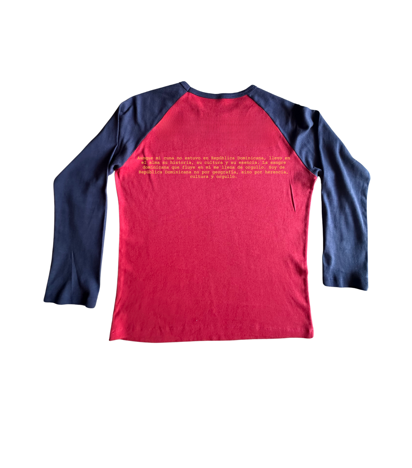 This full length baby tee features contrasting raglan sleeves and a thin binding finish around the neck.
