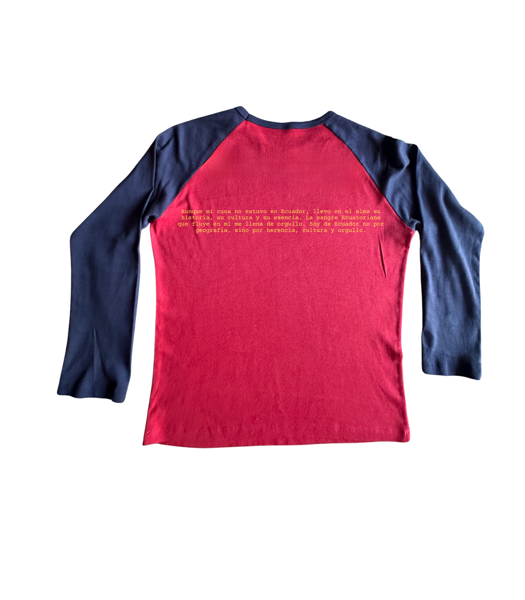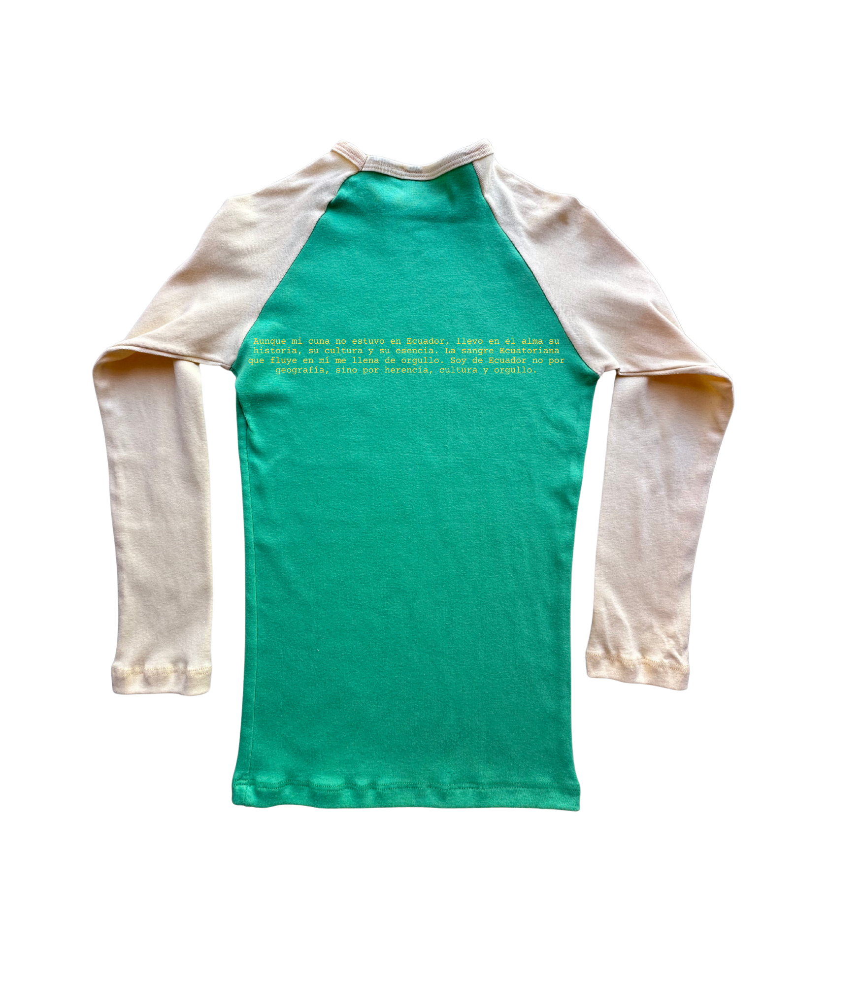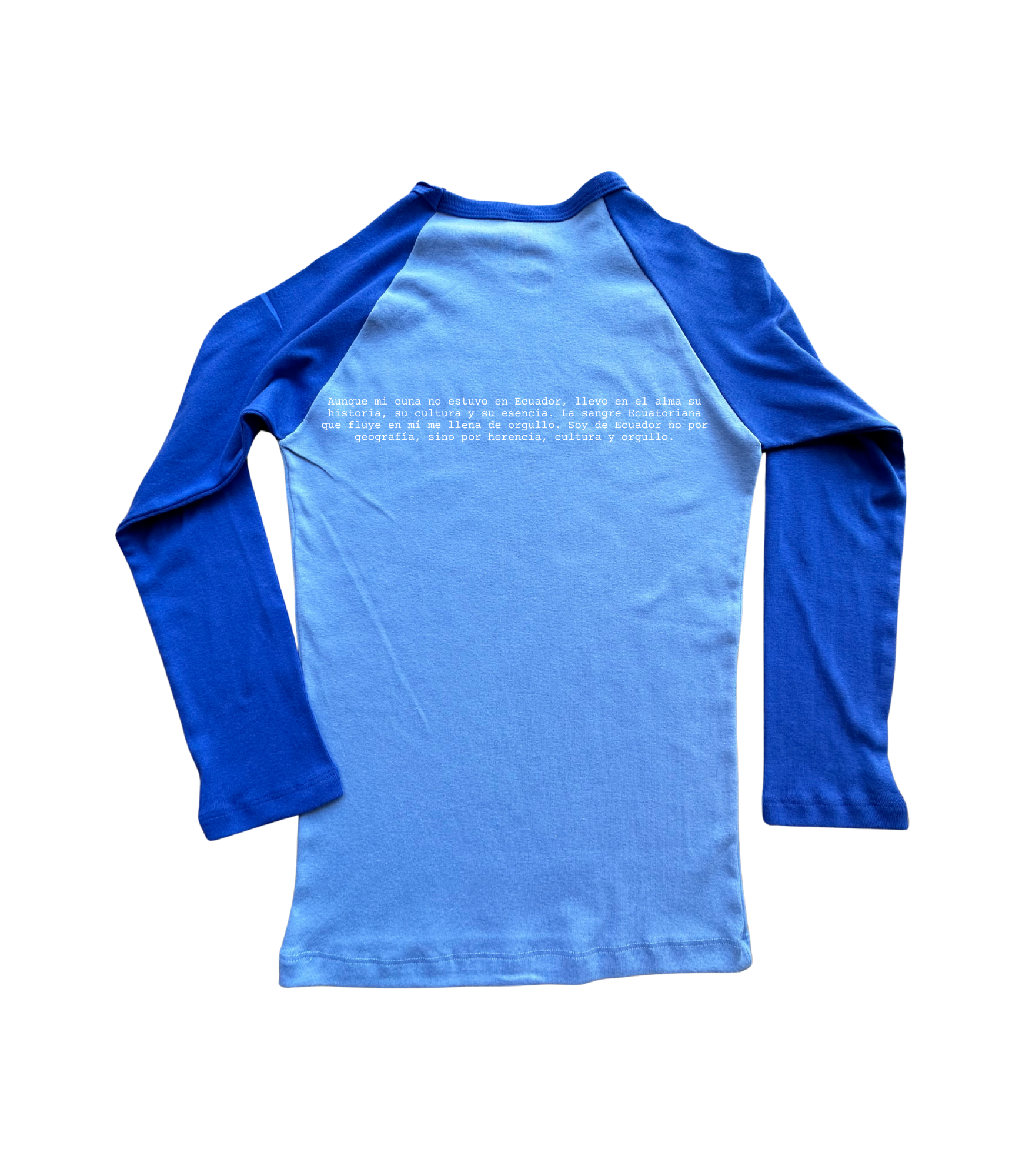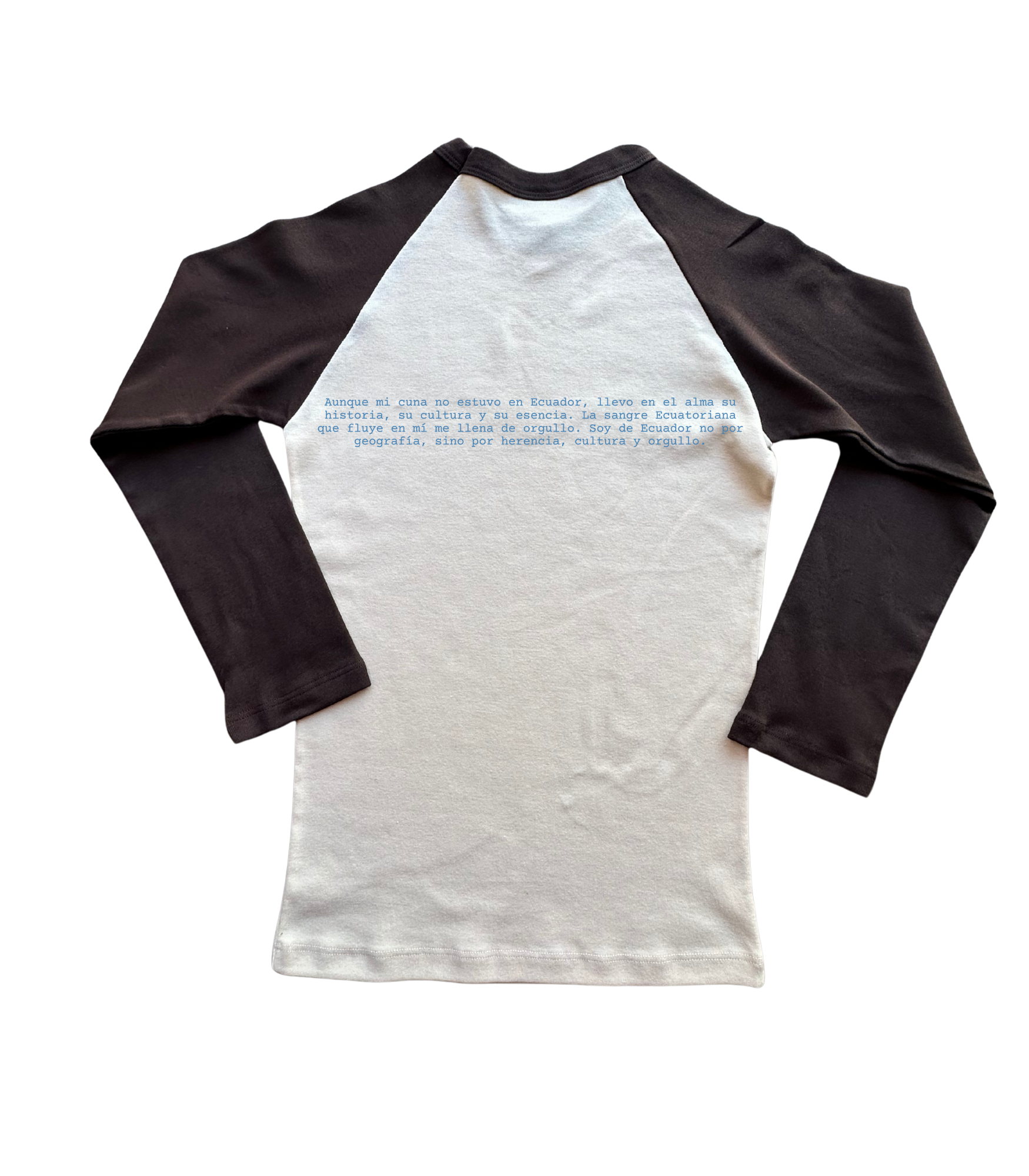 This full length baby tee features contrasting raglan sleeves and a thin binding finish around the neck.
