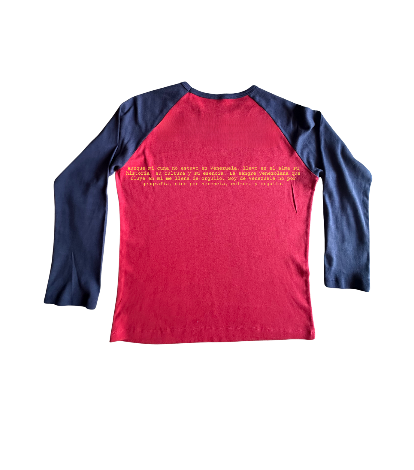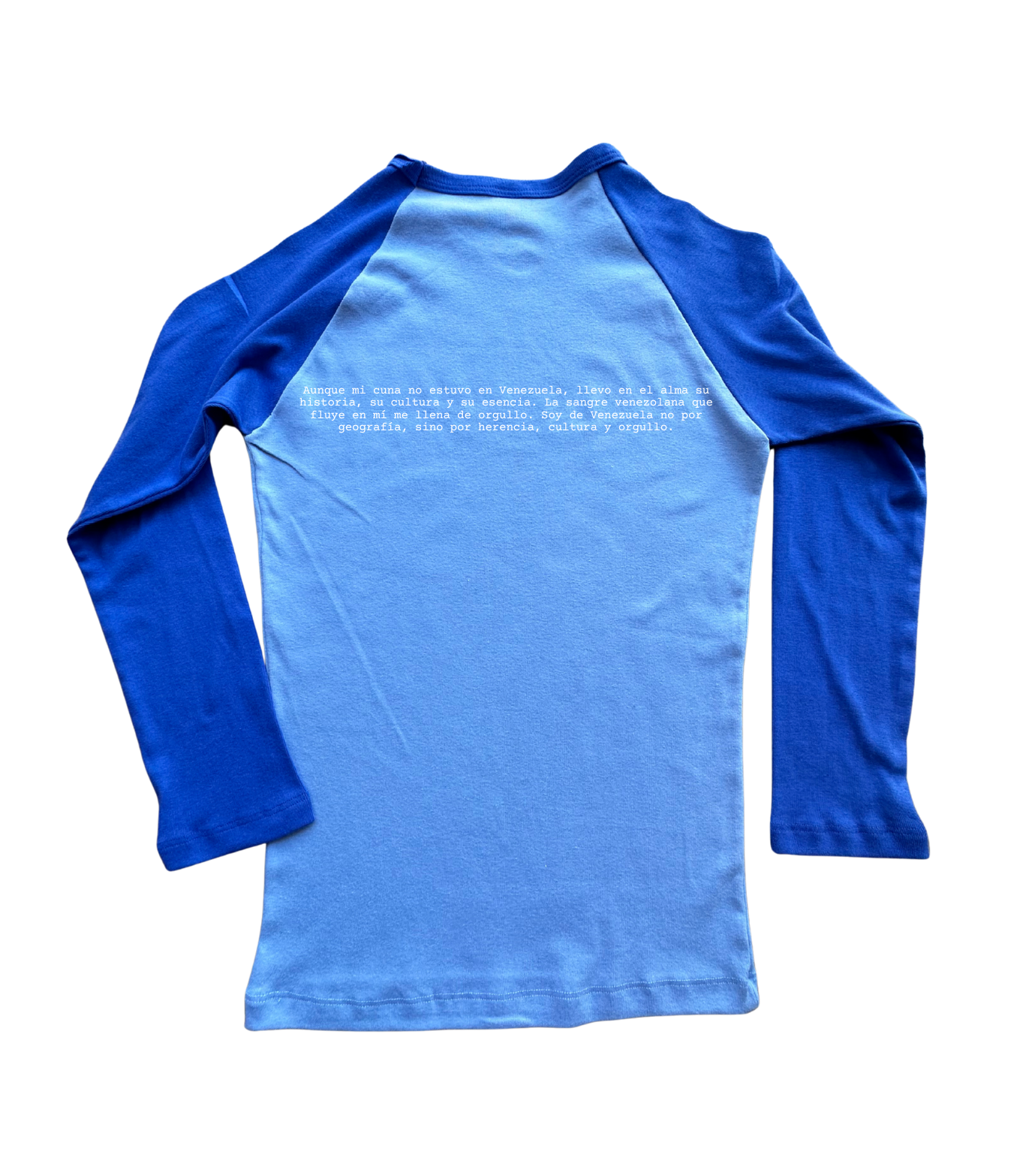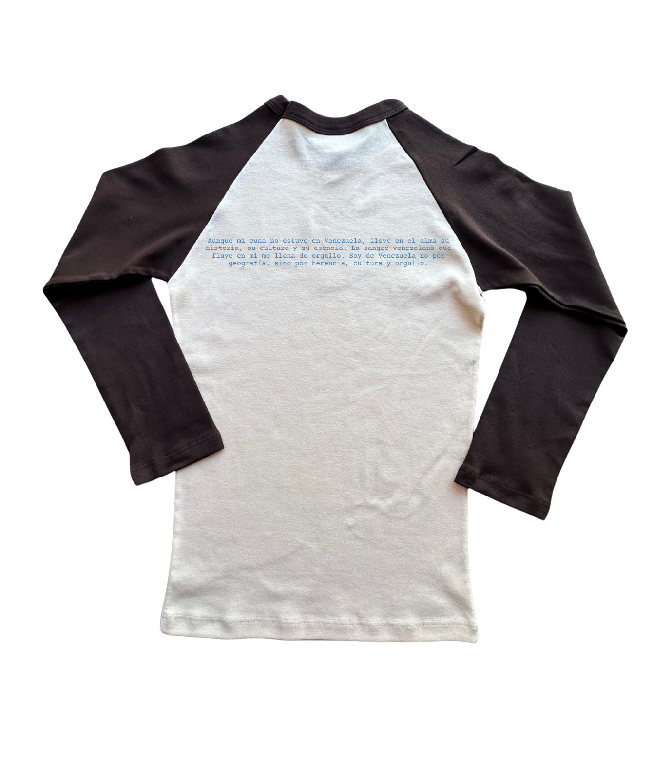 This full length baby tee features contrasting raglan sleeves and a thin binding finish around the neck.